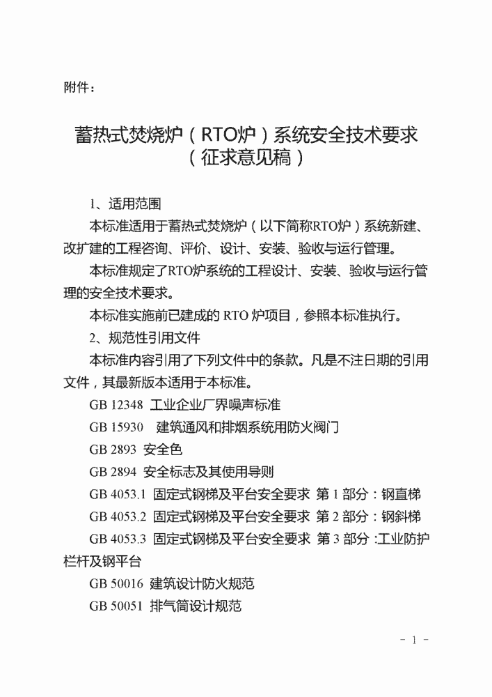 《蓄熱式焚燒爐(RTO爐)系統(tǒng)安全技術(shù)要求》適用于蓄熱式焚燒爐(以下簡稱RTO爐)系統(tǒng)新建、改擴建的工程咨詢、評價、設(shè)計、安裝、驗收與運行管理,同時要求本標(biāo)準(zhǔn)實施前已建成的RTO爐項目,參照執(zhí)行。此標(biāo)準(zhǔn)將規(guī)定RTO爐系統(tǒng)的工程設(shè)計、安裝、驗收與運行管理的安全技術(shù)要求。