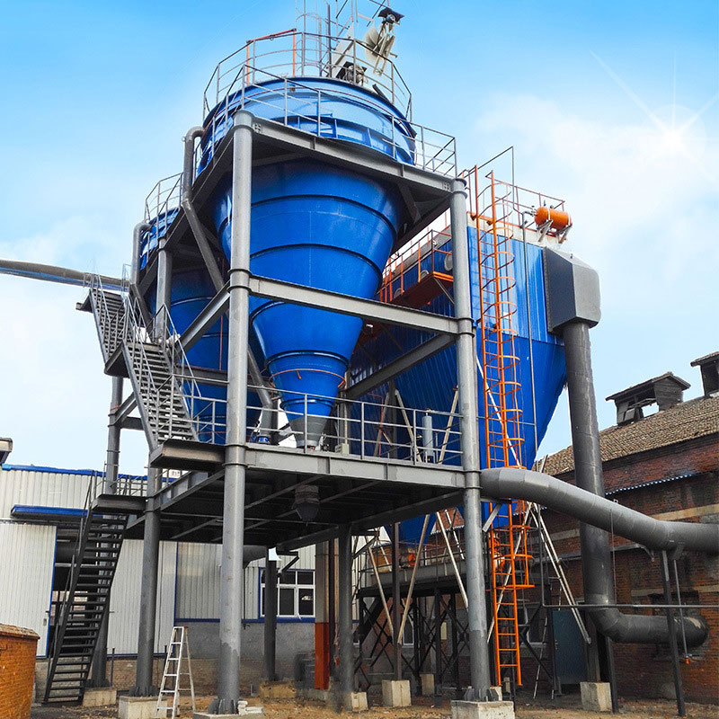旋風(fēng)除塵器使含塵氣流作旋轉(zhuǎn)運(yùn)動(dòng),借助于離心力降塵粒從氣流中分離并捕集于器壁,再借助重力作用使塵粒落入灰斗。在常溫條件下,作用于粒子上的離心力是重力的5-2500倍,旋風(fēng)除塵的效率顯著高于重力沉降室。大多用來去除0.3um以上的粒子,并聯(lián)的多管旋風(fēng)除塵器裝置對(duì)0.3um粒子也具有百分之80-85的除塵效率。